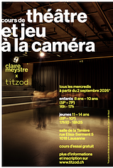 C'est quoi le programme ? Des exercices ludiques, des jeux d’improvisation, du travail avec textes sur scène et à l’image ; et la création d’un spectacle.