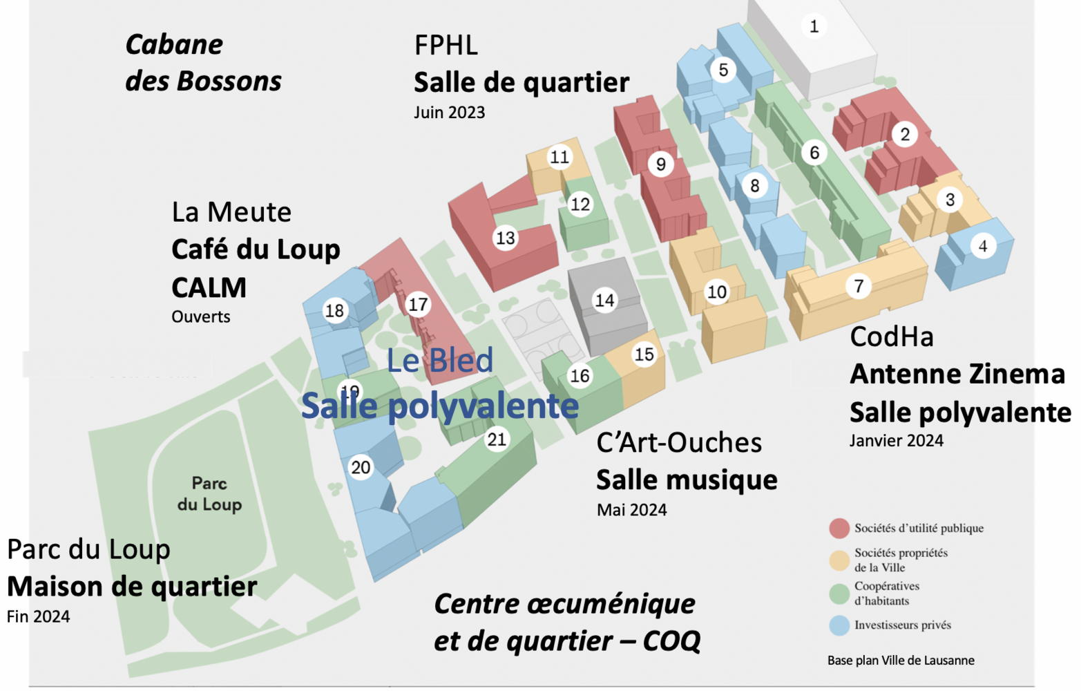 Initié par des habitant-es du quartier des Plaines du Loup, ce groupe avait pour but au départ de répertorier les salles existantes et à venir du Plateau de la Blécherette ainsi que leurs activités, discuter les synergies possibles (activités, communication), échanger sur les réflexions et expériences (notamment les tarifs).
