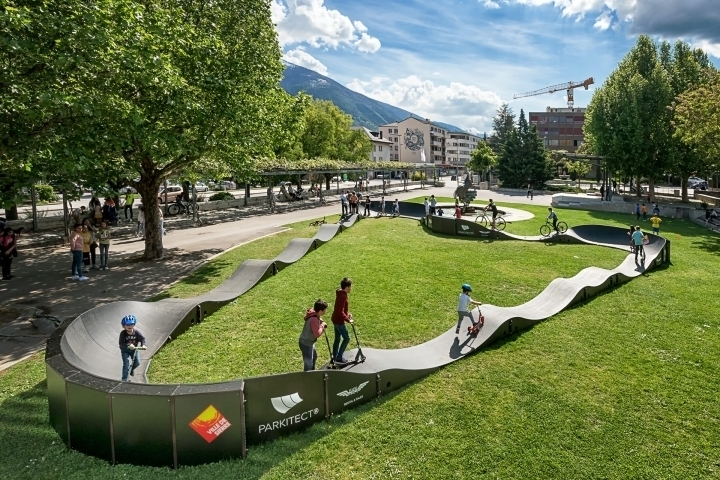 Le pumptrack est un parcours en boucle, constitué de plusieurs bosses consécutives et de virages relevés, et peut être utilisé avec différents équipements sportifs, dont les vélos, les trottinettes ou les rollers.