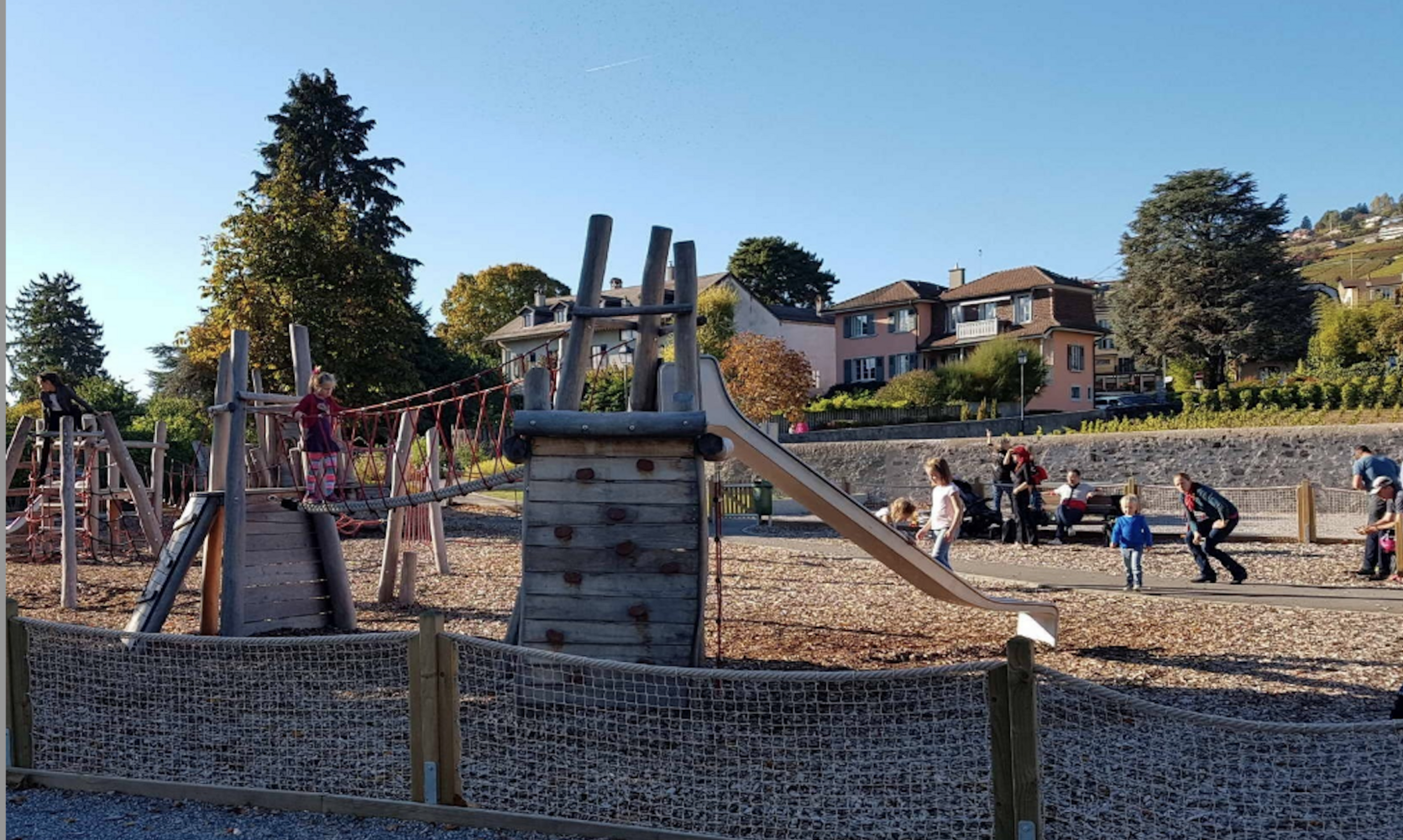 A l'instar de la place de jeu près du port de Cully, la ville pourrait aménager un certain nombre de places de jeu avec un pourtour/délimitation en bois avec 1 (ou 2) entrées (portes qui se ferment).