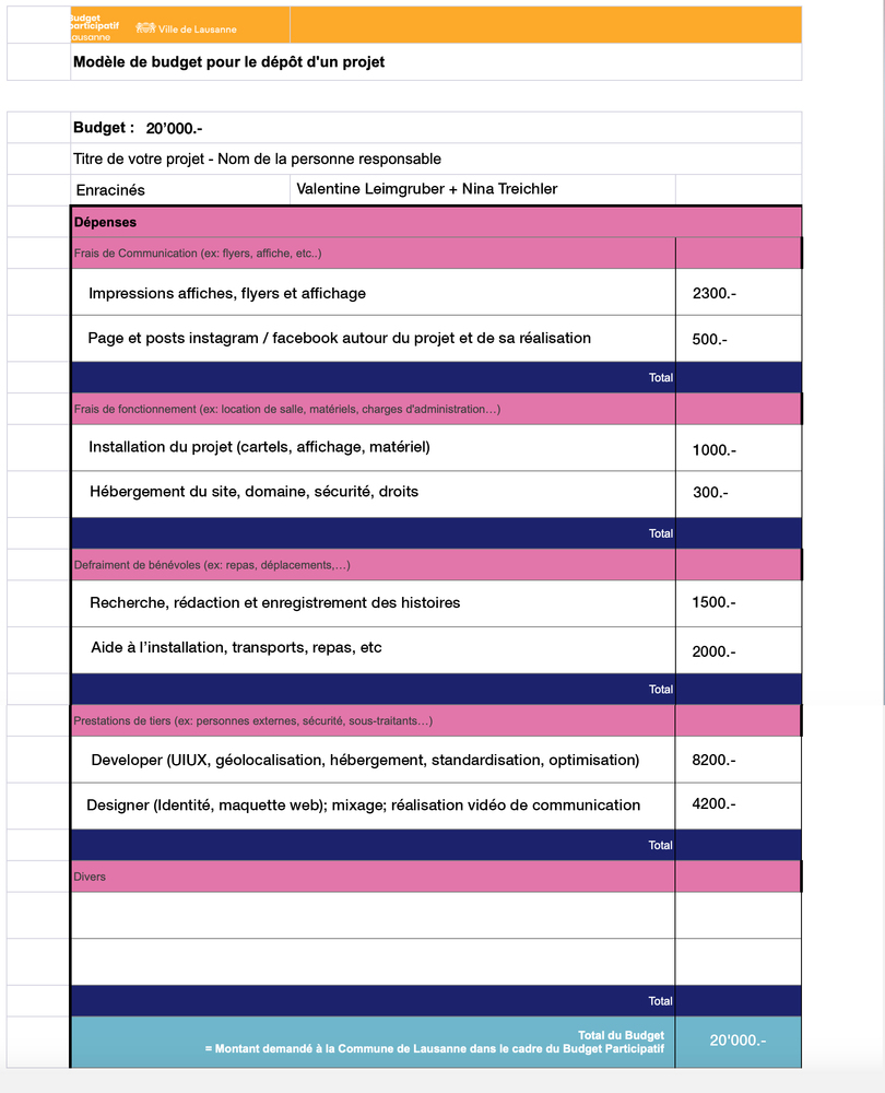 En deux mots Faire (re-)découvrir aux Lausannois leurs quartiers au travers d’histoires racontées par les grands arbres de la ville lors d’une expérience-exposition interactive en plein air et accessible à tous.