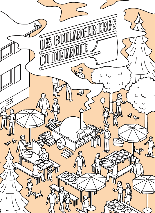Le projet «Les Boulanger·ère·s du Dimanche» se développe en deux temps. La mise en place d’un chantier participatif pour la construction du four aura d'abord lieu. Durant cette phase, les volontaires pourront participer aux différentes étapes de fabrication d’un four en terre, sable et paille, par des spécialistes de la construction en bauge. Une fois construit, le four sera géré par les responsables du projet qui se chargeront, une fois par mois, d’amener le four et de l'allumer dans différents quartiers de la ville. Les habitants pourront alors venir y cuire leurs pains, tartes ou autres pièces boulangères, tout en profitant de la convivialité ainsi générée. Les différents lieux possibles pour organiser ces journées partage seraient ouverts, centraux, faciles d'accès. Comme par exemple: les parcs, la place, les maisons de quartier etc.