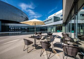 - Espace de visite intérieur tempéré, serre tropicale, terrasse avec fontaine pour les enfants (gratuit), transats pour le repos (gratuit)