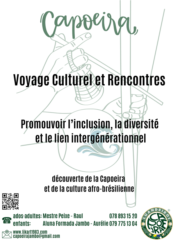 Objectifs du projet : 1. Promouvoir la diversité auprès des familles et des différentes générations par le biais de la Capoeira et de la culture afro-brésilienne, en intégrant des activités inclusives et adaptées à tous. 2. Renforcer les liens familiaux et intergénérationnels grâce à des ateliers de partage, où parents, grands-parents, et enfants participent ensemble. 3. Créer un espace de convivialité et de partage interculturel et social pour favoriser l’intégration des familles immigrées et allophones dans un cadre bienveillant. 4. Encourager la mixité sociale et culturelle en rassemblant différents acteurs du quartier autour d’une activité commune. Structure du projet : Samedis Après-Midi Thématiques ( 1 par trimestre). Chaque après-midi sera organisé autour d’un aspect spécifique de la Capoeira et de la culture afro-brésilienne, avec des activités qui permettront à chacun de découvrir, d’apprendre et de partager. 1er Samedi : Histoire et origines de la Capoeira - Introduction à la Capoeira : Explication des origines historiques et culturelles, notamment l'influence des peuples africains amenés au Brésil par l’esclavage et leur résistance à travers cet art martial. - Initiation à la Capoeira avec des ateliers interactifs avec un groupe intergénérationnels. - Moment de partage: Goûter avec des spécialités brésiliennes 2e Samedi : Art et musique Afro-Brésilienne - Atelier de musique : Découverte des instruments traditionnels utilisés dans la Capoeira. Initiation rythmique pour tous, où chacun peut apprendre et jouer en groupe. - Initiation au chant et aux chants traditionnels : Découverte des chants en portugais associés à la Capoeira, avec des explications des paroles et de leur signification. - Moment de partage: Goûter avec des spécialités brésiliennes 3e Samedi : Gastronomie afro-brésilienne - Atelier cuisine en famille: Préparation d'un plat traditionnel brésilien - Dégustation collective et moment de convivialité : Un repas où les familles peuvent goûter et partager le plat fait ensemble, propice aux discussions et à la rencontre. 4e Samedi : Célébration et Roda de Capoeira - Roda de Capoeira : Tous les participants forment une grande roda (cercle) pour assister ou participer aux démonstrations de Capoeira, en mettant en pratique ce qu’ils ont appris. - Témoignages et partage d’expériences : Temps de parole pour les familles, les enfants, et les aînés, permettant de partager leur expérience et ce qu’ils ont retenu du projet. - Dégustation d’un buffet participatif où chaque famille apporte une spécialité de son choix pour partager la diversité culinaire du quartier. Bénéfices Attendus: - Favoriser les rencontres interculturelles et renforcer la cohésion sociale dans le nouveau quartier. - Éveiller les jeunes et les familles à la diversité culturelle grâce à un projet inclusif et éducatif. - Renforcer les liens familiaux par des activités ludiques et éducatives où chacun·e a un rôle. Ce projet met en avant un espace de rencontre chaleureux et bienveillant, propice au partage culturel et à la découverte de l’héritage afro-brésilien.